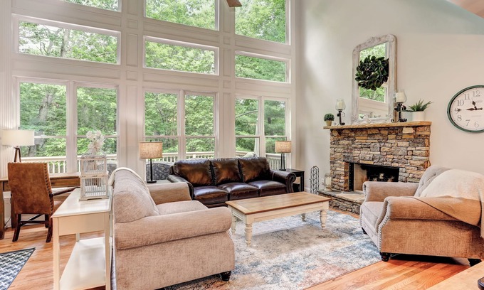 Modern Cabin in Big Canoe Waterfalls, View, GameRoom, Dog friendly is located in Big Canoe. Modern Cabin in Big Canoe Waterfalls, View, GameRoom, Dog friendly provides accommodation, featuring Pool, Sports/Activities, Wellness Facilities, among other amenities. This Cabin features Pool, Sports/Activities, Wellness Facilities, to make your stay a comfortable one.