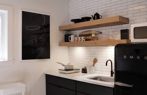 A minimalist modern loft in the heart of the Catskills Mountains. It has a spacious living and sleeping area and an additional sleeping nook.