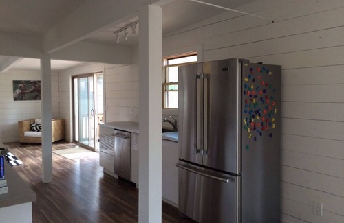 A cook's kitchen, flat screen tv's, DVD library, small actual book library, sleek bathrooms, new linens, doggie door and a fenced yard for the pets. A yard filled with Ponderosa pines seal the deal.