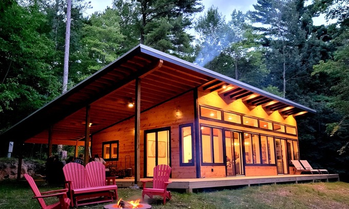 Built as a winter or summer escape for a couple or small family, this beautiful four season cabin is a great way to experience the Northwoods of Wisconsin and Hayward area in a modern, well-appointed, aesthetically rich space designed with relaxation in mind.