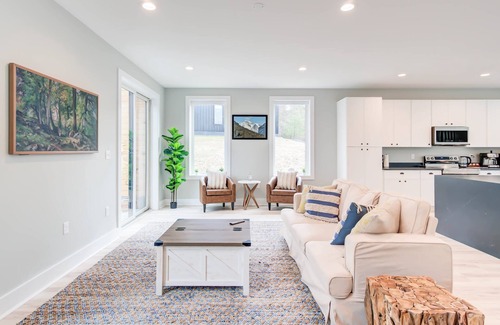 The master bedroom has a king size bed and an en suite bathroom with an oversized heavenly shower. The second bedroom has a queen bed and a full size sleeper sofa. The second bedroom connects to the third bathroom via a Jack and Jill bathroom. The third bedroom is the kids room with twin size bunk beds built into the framing of the house with nightlights. The third bedroom also has a full size bed. All mattresses are memory foam mattresses. All linens and towels are provided.