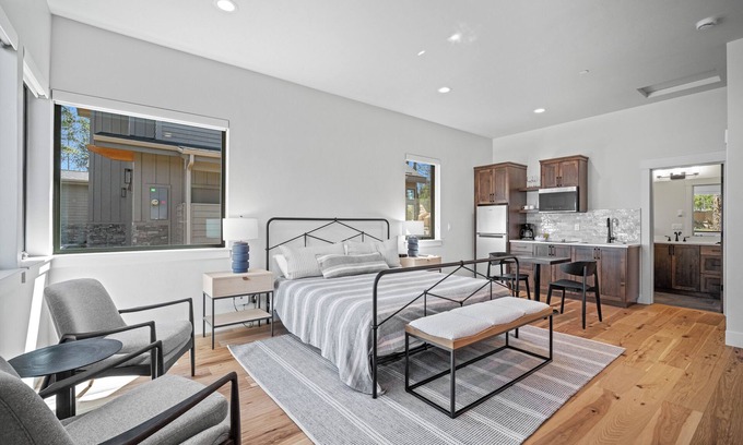 Set within the scenic Forestbrook enclave of Caldera Springs, 18163-2 Forestbrook Loop is the perfect basecamp for fun-fueled adventures in the Pacific Northwest. With a private entrance separate from the main home, this 455 sq. ft. attached studio residence comes with a king-size bed, full bathroom and an outdoor terrace with views of the surrounding Ponderosa Forest. Make yourself at home with a kitchenette equipped with all the essentials, dining room table for two with two extra chairs, a separate living area with an electric fireplace, flat-screen 55" 4K TV, and high-end touches throughout. The studio includes one designated parking spot in the driveway. Overflow parking can be found at the Lake House parking lot, just a few minutes away. Forestbrook homes are located just moments from exclusive amenities, including the Lake House and Quarry Pool, Caldera Links golf course, community parks, tennis and pickleball courts, and an abundance of lakes, streams and trails.