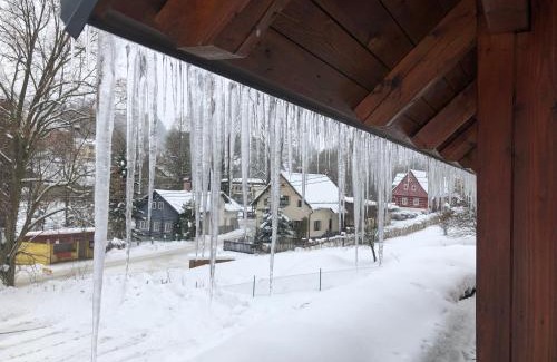 Modern chalet Na Zlatníku offers accommodations in Zlatá Olešnice, 17 miles from Szklarska Poreba Bus Station and 17 miles from Izerska Railway. 16 miles from Szklarki Waterfall and 16 miles from Kamienczyka Waterfall, the property features a garden and barbecue facilities. There's a picnic area and guests can use free Wifi and free private parking. Featuring a terrace and mountain views, the spacious apartment includes 2 bedrooms, a living room, flat-screen TV, an equipped kitchen, and 1 bathroom with a shower. Towels and bed linen are available in the apartment. There's also a seating area and a fireplace. Skiing, cycling, and hiking are possible within the area, and the apartment offers ski storage space. Dinopark is 18 miles from Modern chalet Na Zlatníku, while Death Turn is 19 miles from the property. Pardubice Airport is 72 miles away.