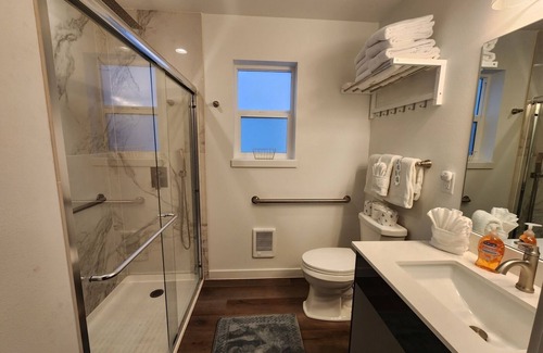 This handicap accessible condo has a ramp, accessible kitchen, and bathroom. There is a rollaway bed provided on the ground floor.