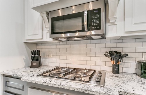 Each bedroom is thoughtfully designed for relaxation, with soft linens and plenty of natural light. The primary suite features a king-sized bed and a private ensuite bathroom with a soaking tub for a spa-like experience. Three additional bedrooms are perfect for family, friends, or remote work, offering plenty of space and comfort.