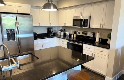 - Fully Stocked Kitchen - Dishes, pots, pans, silverware, essential utensils, soaps, cleaning supplies, dishwasher detergent, cooking spray, garbage bags