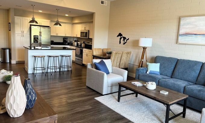 Modern condo on Manistee River just steps away from downtown! has 2 Bedrooms , 1 Bathroom, and max occupancy of 5 people. The minimum rental for this property is 1 nights, but this can change depending on the season you plan on staying. Previous guests have given good rated it, and VRBO labeled it a top-rated Condo because of the excellent services rendered by the owner or manager of this Condo, and has consistently provided great experiences for their guests. Most families or guests that use it recommend it to their friends and some of them are repeat guests. Condo has a friendly neighborhood, and the Manistee has interesting places to visit. If you want to learn more about the Condo in Manistee, such as places to visit and things to do nearby, you can check below to learn more.