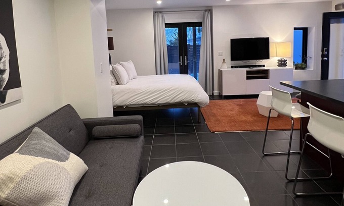 The space, with a clean, modern, and cool atmosphere, is perfect for both leisure and business travelers. Despite its location in the basement, the space is half-exposed, providing plenty of natural light and access to outdoor areas.