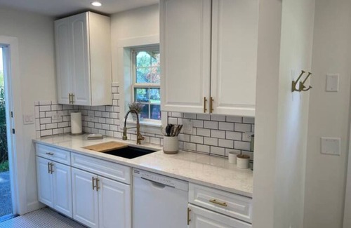 Cozy up in this all newly renovated 2 bedroom cottage with brand new king size pillow top beds, Egyptian cotton sheets, oversized pillows, extra throw blankets. This property is dog friendly up to 2 fury friends. Backyard partially fenced. Quite small neighborhood.