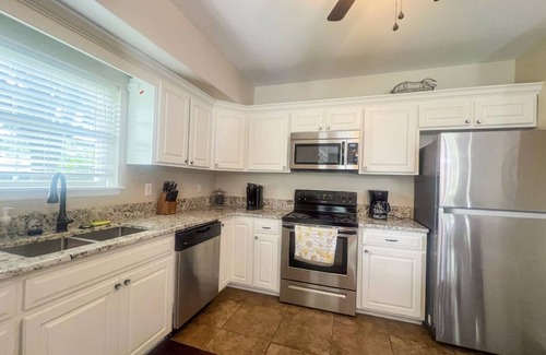 - Stainless steel appliances (refrigerator, stove, microwave and dishwasher) with granite countertops