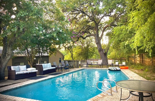 Heated pool with outdoor patio. Only 15 mins from Six Flags. Modern Cozy Living in this fully remodeled estate. Just North of San Antonio. 15 mins from Six Flags, New hip restaurants, and La Cantera Mall. 25-30 mins from riverwalk and downtown (during low traffic). This property has it all with a comfortable country setting so close to all the luxuries. Only 15 minutes from top golf and ifly. Fully stocked kitchen, pots and pans, dishes, glassware, silverware. Includes most spices and general cooking ingredients. Cable and Internet included.