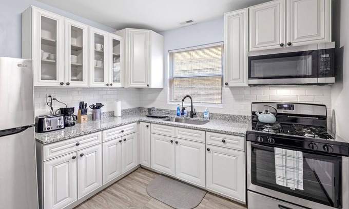 *Fully Stocked Kitchen + Microwave + Fridge + Coffee maker + Tea