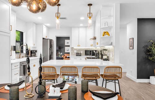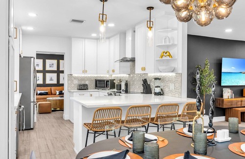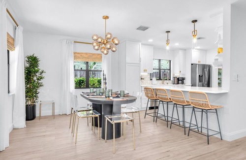 The Opulent Coco Villa! Indulge in a one-of-a-kind West Palm Beach luxury vacation rental where mid-century chic meets tropical resort living. This immaculate, high-end Flamingo Park home comfortably accommodates 9 guests in style.