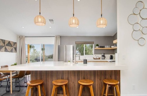 Desert Oasis is a gorgeous and completely remodeled desert modern style home for you, your family and friends. Only a 7 minutes drive to the main entrance of the park and 5 minutes drive to Joshua Tree Village. You are close enough to enjoy all the area has to offer.