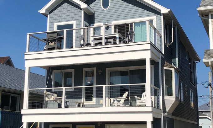 Constructed in 2015 and 20 steps from the beach, our 4 bedroom (plus den), 3.5 bathroom (plus 2 outdoor showers) kid-friendly home is perfect for your family getaway. Includes 6 adult season beach passes.