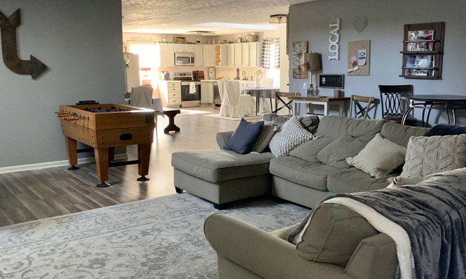 #Barn32 is located conveniently off SR 32 in Westfield, IN, only mins from Grand Park, Zionsville, Carmel and Indianapolis. Recently remodeled to offer guests a clean, safe and luxurious stay! Over 2400 sq. ft of private space including parking, lawn, and deck. Farm style retreat features many amenities (WiFi, Netflix, Hulu, XBox, games...) that will make everyone feel at home. Perfect for your team, family or even a simple get away. 12 beds with additional airbeds available. Instagram#thebarn32