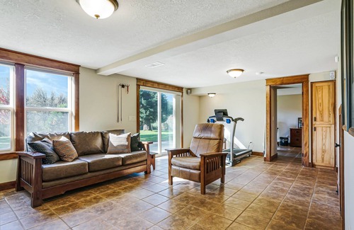 A large farmhouse with a peaceful setting. Nestled into a 110 acre oak savanah this property is as serene as it gets. Golf next door, walk thru the woods or just sip wine on the porch. This property has it all! The beach is less than an hour's drive and the mountains are even closer. Drive 2 miles down the road to Baskett Slough National Wildlife Refuge and see thousands of birds.