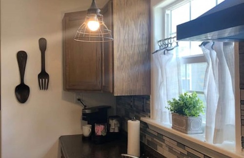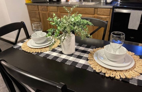 This stylish two bedroom duplex is centrally located in Carrie Underwood's hometown of Checotah. You're just blocks away from locally owned restaurants, boutiques, antique shops, and grocery stores. You'll love that this farmhouse styled duplex has all the basic cooking essentials and a washer/dryer. Guests will enjoy all the comforts of home!