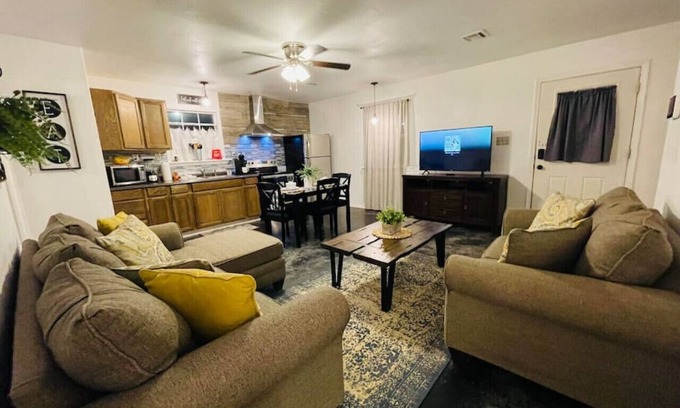 Modern Farmhouse Style Duplex has 2 Bedrooms , 1 Bathroom, and max occupancy of 4 people. The minimum rental for this property is 1 nights, but this can change depending on the season you plan on staying. Previous guests have given good rated it, and VRBO labeled it a top-rated House because of the excellent services rendered by the owner or manager of this House, and has consistently provided great experiences for their guests. Most families or guests that use it recommend it to their friends and some of them are repeat guests. House has a friendly neighborhood, and the Checotah has interesting places to visit. If you want to learn more about the House in Checotah, such as places to visit and things to do nearby, you can check below to learn more.