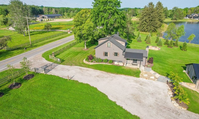 Modern Farmhouse w/Hot Tub, Lake Views & Scenic Trails in Ohio Wine Country is located in Madison. Modern Farmhouse w/Hot Tub, Lake Views & Scenic Trails in Ohio Wine Country provides accommodation, featuring Air Conditioner, Parking, TV, among other amenities. This Cabin features Air Conditioner, Parking, TV, to make your stay a comfortable one.