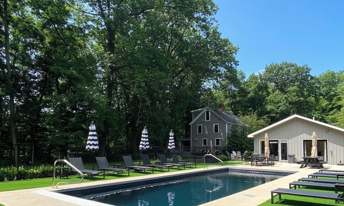 Modern Farmhouse w/ Pool, Hot Tub & Guest House, 5 mins to Beach | House in Three Oaks