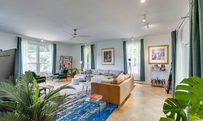 Luxury 3BR, 3.5BA + Office vacation rental in North Portal Estates, Washington, DC. This Frank Lloyd Wright-inspired split-level home offers a private heated pool, gym with Peloton, lush garden, and multiple patios. Perfect for families, groups, or professionals, it features a modern kitchen, spacious dining room, cozy double heigh great room, private office with sofa bed, and additional guest spaces. Master suite with en-suite bath, plus a separate lower-level entrance with office/TV lounge and laundry. Enjoy a family-friendly, pet-friendly urban oasis minutes from Downtown DC, Chevy Chase, and Rock Creek Park. Ideal for extended stays, remote work, and peaceful getaways with city access. Book your DC retreat now!