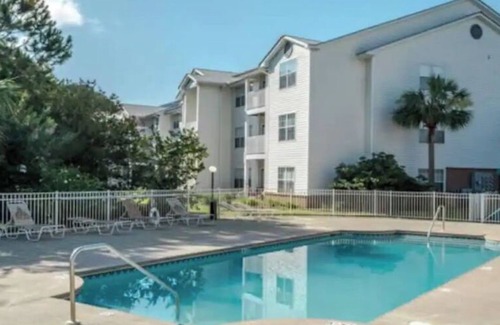 The condo is located in the first building from the entrance (building #4100), ground floor. It has a large entrance door, no stairs through the entire property. A nice sized living space with dining and patio access. Brand new and fully equipped kitchen. Coffee maker, toaster, pots, dishes, etc. Two large bedrooms with high-quality mattresses, linen bedding, guest bathroom with bathtub and master bathroom with shower, laundry room with washer and dryer, 3 closets with plenty of storage. Full access to the Pool, Gym, and picnic area. Free parking.