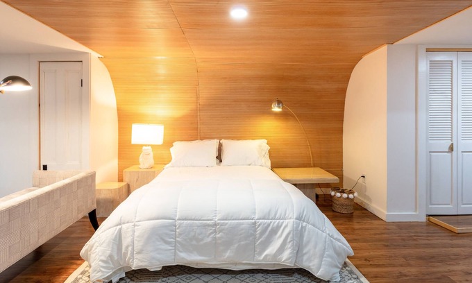 Comfortable studio unit in brownstone has been newly renovated. Very clean and unique with mid century style, slat cove sleeping area, under counter refrigerator 3 in 1 oven and sous vide hot plate in unit