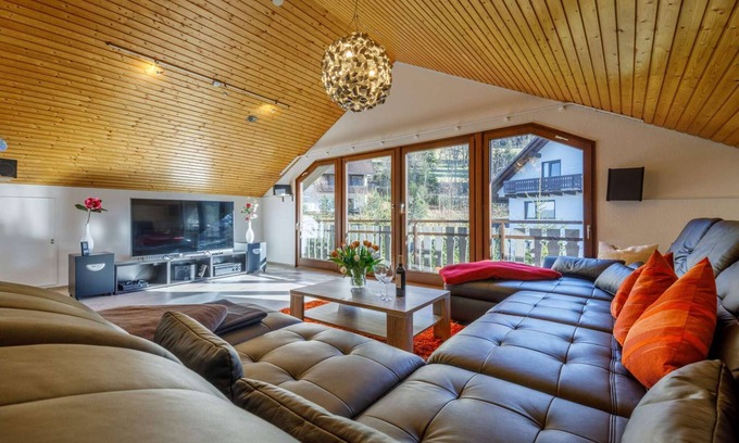 Modern home - BBQ, Sauna, Whirlpool, fireplace, Wifi, BBQ, fenced, playground, ski run is located in Feldberg. Modern home - BBQ, Sauna, Whirlpool, fireplace, Wifi, BBQ, fenced, playground, ski run provides accommodation, featuring Balcony/Terrace, Bedding/Linens, Fireplace/Heating, among other amenities. This House features Balcony/Terrace, Bedding/Linens, Fireplace/Heating, to make your stay a comfortable one.