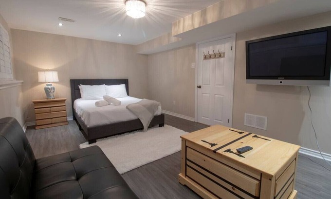 Welcome to our modern Midland retreat! Our house offers modern amenities and a hot tub for relaxing after a great day of activities! Our cozy home is a haven for winter sports enthusiasts. We are 20 min from Mount St. Louis, 30 min from Horseshoe Valley, and 60 min from Blue Mountains,