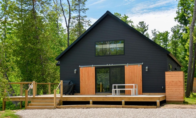 Modern home in Glen Arbor Steam shower Walk to lake Air conditioning is located in Glen Arbor. Modern home in Glen Arbor Steam shower Walk to lake Air conditioning provides accommodation, featuring Wellness Facilities, Pet Friendly, Fireplace/Heating, among other amenities. This Cabin features Wellness Facilities, Pet Friendly, Fireplace/Heating, to make your stay a comfortable one.