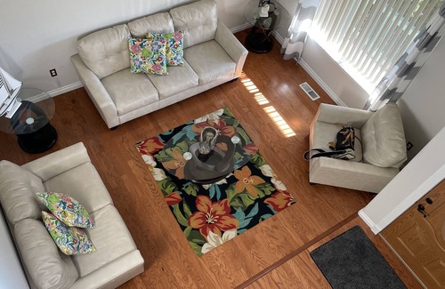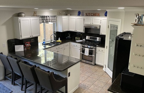Our rental comes with 4 bedrooms, private bathrooms, kitchen, and 2 living rooms that you're free to use any time, AC, Roku T.V free parking for 2 cars --We got everything you need.