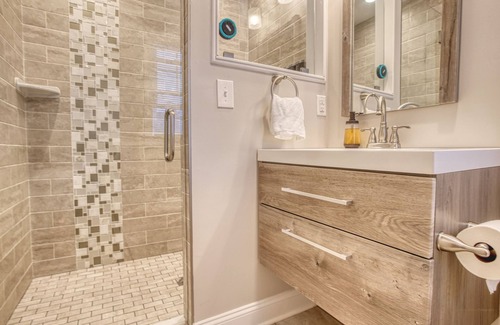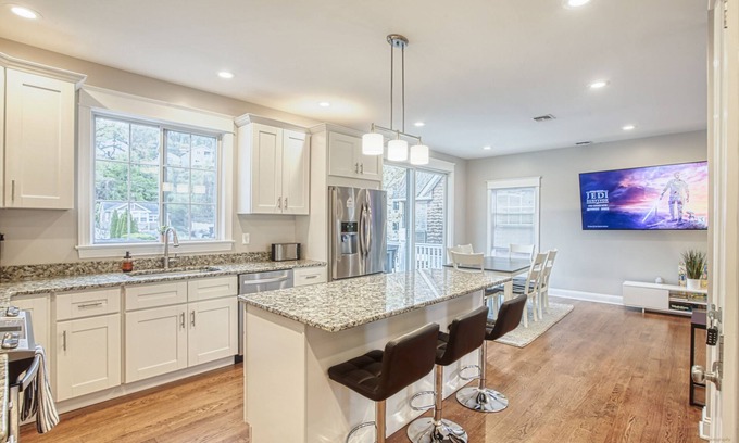 Newly built 3BR/2.5BA home in Highlands, NJ offers ferry access to NYC, stunning views of the skyline, nearby seafood restaurants, and just a short walk to the beach. Enjoy modern amenities and high-end finishes throughout. Perfect for a family vacation or getaway with friends.