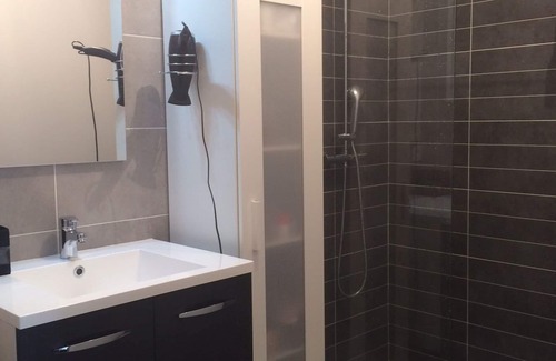 Salle d'eau (douche) et wc séparés. 1 cellier avec lave-linge.