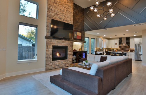 Recently renovated modern home less than 2 miles (5 min) from downtown surrounded by breweries/bars/restaurants within walking distance. The house has every amenity a modern high rise would have including a heated pool, rooftop with downtown view, gym, game room with a pool table and shuffle board, and multiple fireplaces / fire pits. Living area includes a fully stocked Viking gourmet kitchen with a bar. Master bedroom has a stand up desk and printer for the working professional.