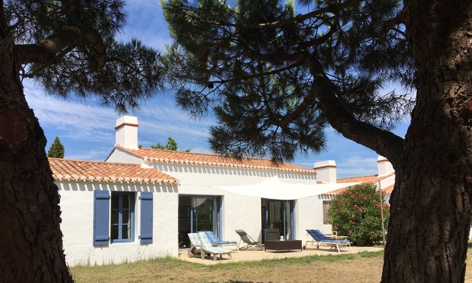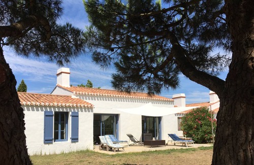 Calm, comfort and tranquility characterize our house, designed by an architect from Noirmoutier, for family holidays. The beach is 3 minutes walk from the pine forest in front of the house, very quiet and fabulous for shore fishing.