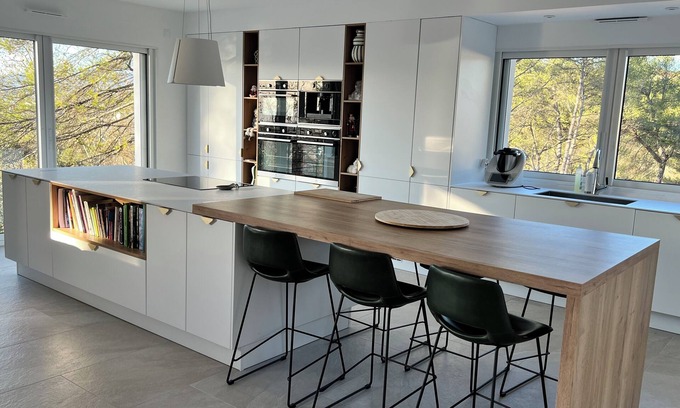 Modern house is located in Rousset. Modern house provides accommodation, featuring Private Pool, Fireplace/Heating, Barbecue/Outdoor Cooking, among other amenities. This Villa features Private Pool, Fireplace/Heating, Barbecue/Outdoor Cooking, to make your stay a comfortable one.