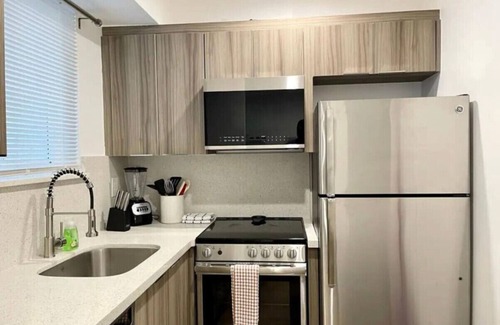 This charming studio is situated in a newly renovated adults-only boutique hotel. The unit features one queen-size bed with a couch bed, a fully equipped kitchen, a workstation, and a full bathroom. The studio includes a Roku TV, allowing you to access all your favorite streaming services. Conveniently located in the heart of Hollywood, FL, it is just minutes away from the beach, Fort Lauderdale-Hollywood International Airport (FLL), and Hollywood Boulevard.