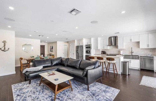 Welcome to our stunning modern 3BR/3BA intercostal pool home! Enjoy an open floor plan with sleek decor, a gourmet kitchen, and spacious living areas. Relax in the private pool or take in serene water views from the dock. Each bedroom features luxurious amenities and ensuite bathrooms. Perfect for families or groups seeking a chic, comfortable getaway. Close to beaches, dining, and entertainment. Book your stay and experience coastal living at its finest!