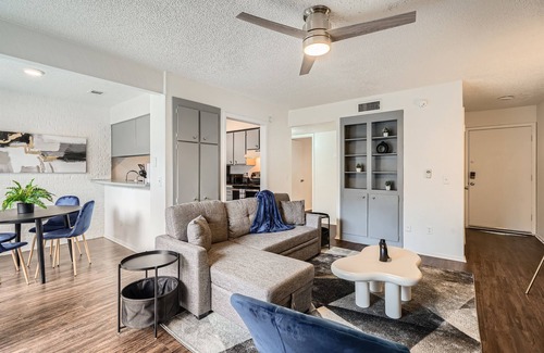 Escape to your picturesque getaway in this spacious 1 bedroom apartment in SoCo! Perfectly located on downtown’s South Congress Avenue just a few steps to Austin’s convention center (4 min away), West 6th Street (5 min away), Zilker Park, award-winning restaurants downtown, bars, shops, historic landmarks, and attractions. Adventure through Austin and the region easily from this prime location.