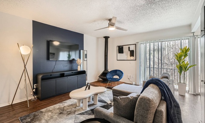 Modern King Suite Getaway | Sleeps 4 | Pool, Prkg is located in Travis Heights. Modern King Suite Getaway | Sleeps 4 | Pool, Prkg provides accommodation, featuring Pool, TV, Fireplace/Heating, among other amenities. This Apartment features Pool, TV, Fireplace/Heating, to make your stay a comfortable one.
