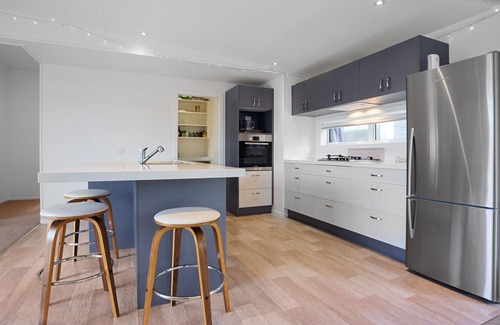 Modern Kiwi Bach is situated in a great position that is very close to the walkway to the beach. Plus you are just a 5-minute walk to the shopping village with cafes, boutiques, and all grocery amenities. You are also within walking distance to the popular wedding venue “Flatwhite Café - On the Beach”