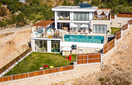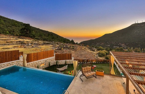 Kalkan Sarıbelen köyünde bulunan sessiz ve sakin bir bölgede konumlanmış doğa manzaralı Villamız 2 yatak odası ile 4 kişi konaklama imkânı sağlamaktadır. Villamız oldukça konforlu ve modern dizayn edilmiş olup alt katında kapalı havuz, sauna ve hamam mevcuttur. Muhafazakâr aileler, balayı çiftleri ve arkadaş grupları için uygun villalarımızdandır. Kalkan merkeze 15 dakikalık araç mesafesindedir. Doğa ile iç içe bir tatil amaçlayan misafirlerimiz için en uygun villalarımızdandır.