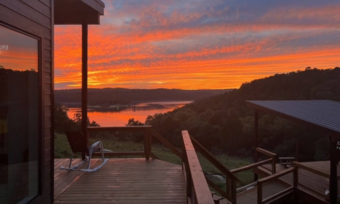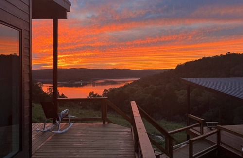 Experience everything the Ozark Mountains have to offer at this Remote modern cabin with a unique modern design. This cabin just finished construction and sits on a gated 60 acres. All modern finishes, 12 foot ceilings with 8 foot windows opening to some of the best views on the lake. A dark exterior that meshes with rustic mountains of the Ozarks opens up to a light and airy kitchen with waterfall quartz countertops. A separate pergola is attached with a hot tub, outdoor sectional, and fire pit and propane grill. Smart tv with Netflix, high speed intenet and all the apps to keep you connected. You can also hike on the property and explore the surrounding area. This is a very remote and tranquil area of the Ozarks and Norfork Lake, miles from the nearest town, a perfect place for a true getaway. This a truely a unique spot, nothing else like it around! Come experience it!