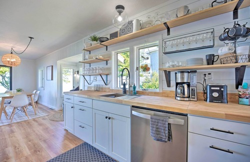 KITCHEN: Fully equipped w/ new appliances, cooking basics & spices, drip coffee maker, French press, refrigerator w/ french doors, gas stove, toaster, blender