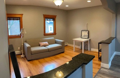 As you enter our home you will immediately feel like you are visiting the lake! You will be greeted with our entertainment room to your right, which also features a pull-out couch.