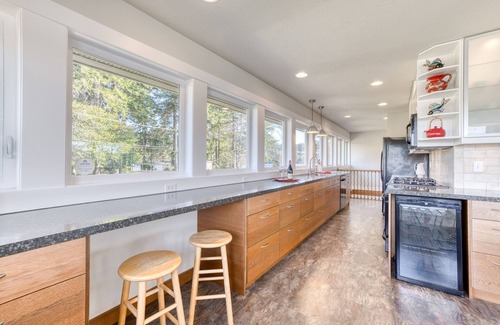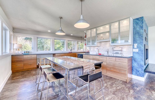 Plan an idyllic getaway with this lovely lakefront house just east of Lincoln City. Complete with lake views, a private dock, and plenty of space and modern comforts, your group will feel at home.