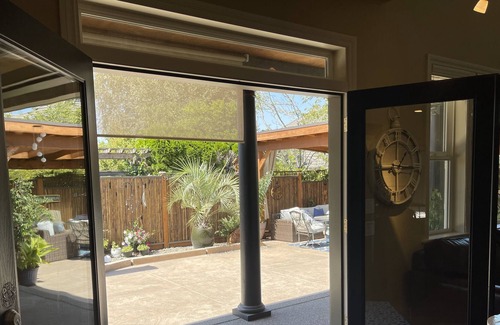 Peaceful home to come back after a busy day. Soak in your jetted bath tub. Relax out back surrounded by Palms, bamboo and unique fountain. Enjoy a glass of wine in your outdoor garden living area underneath a cedar pergola with skylights and a six foot fire table, listening to your favorite music. Maybe a game of corn hole is more your style. Plenty of fun and seating for all.