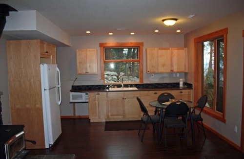 The cabin has three separate levels...Main, loft & ground/walk-out. Two families can cohabitate very comfortably due to the ground level dinette that has all the kitchen essentials. All that's missing is an oven/stove in the dinette.