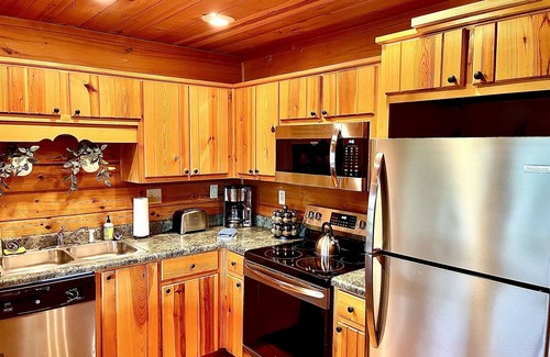 Traveling with a bigger group? The Ruby Owl is one of two side-by-side 3BR/3BA townhouses under one roof. Book The Garnet Owl alongside Ruby to accommodate up to 14 guests comfortably. While the townhouses share a front deck, separating walls on the interior and back deck help to provide peace, privacy, and comfort. Hosting an even larger group? No problem! We've got you covered. Book the neighboring cabin (also containing 2 townhomes) as well and host up to 27 guests in one convenient location (collectively known as "The Gemstone Owl Retreat")!